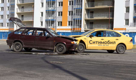 Saint Petersburg, Russia-June 2020: an accident involving a taxi citymobil.