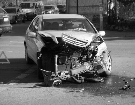 Destroyed front bumper of a passenger car Warsaw outskirts Poland . High quality photo
