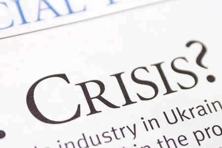 Crisis write on a book with keywords isolated on wooden background. Finance concept