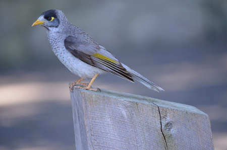 The Common Myna is brown with a black head. It has a yellow bill, legs and bare eye skin.The Common Myna is a member of the starling family and is also known as the Indian Myna or Indian Mynah.