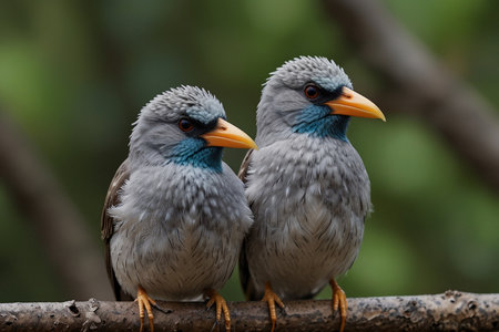 Portrait of a pair of Blue-cheeked Starlings, Thailand