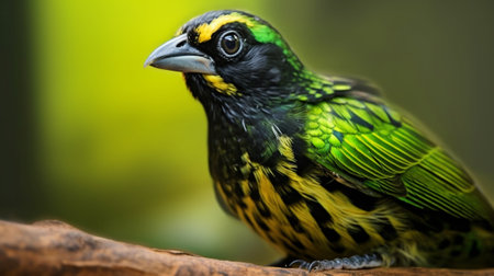 Generative AI : Colorful bird Scarletfaced Liocichla on branch
