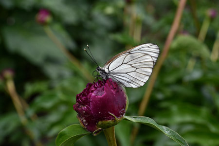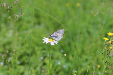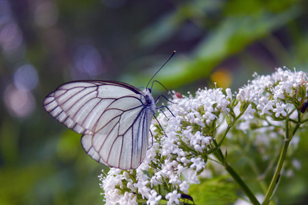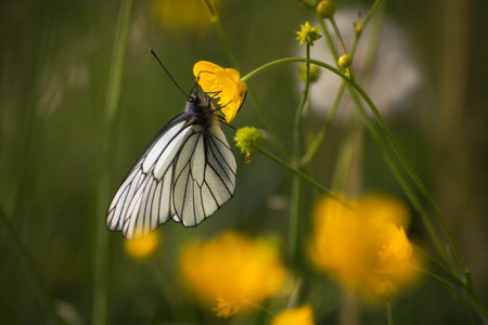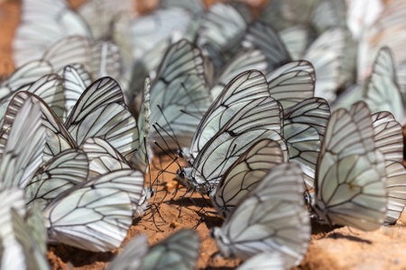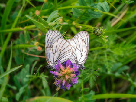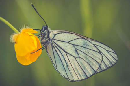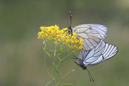Black-veined whites butterfly -Aporia crataegi near lake Baikal, Russia