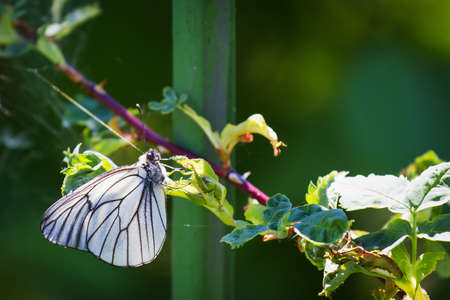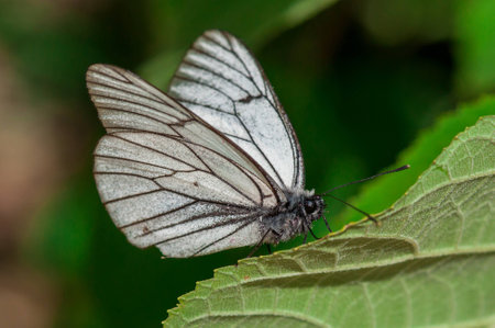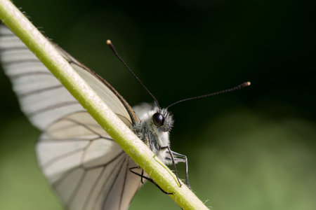 The black-veined white butterfly, Aporia crataegi, close-up macro