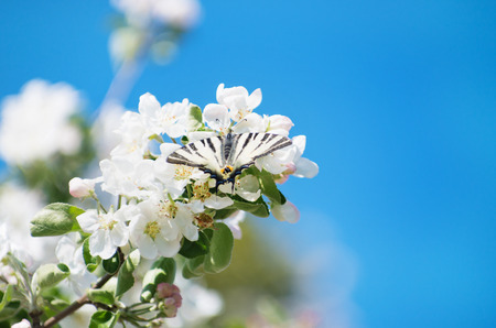 Spring Apple Blossom over blue sky.