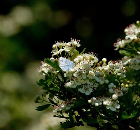 Holly Blue Butterfly on Hawthorn in Dappled Sunlight during springtime
