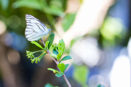 A beautiful white winged butterfly on a flower