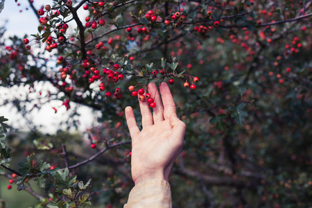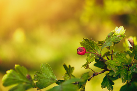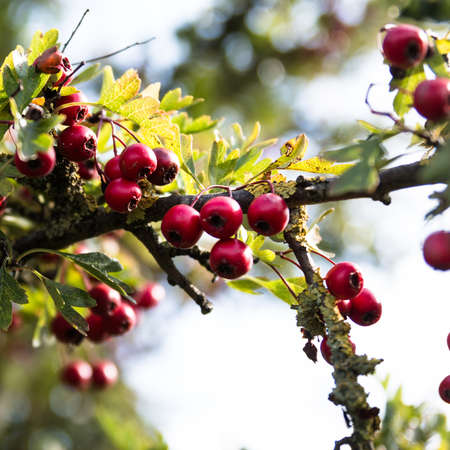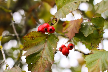 Hawthorn Tree ordinary. Ripe fruit on the branch.