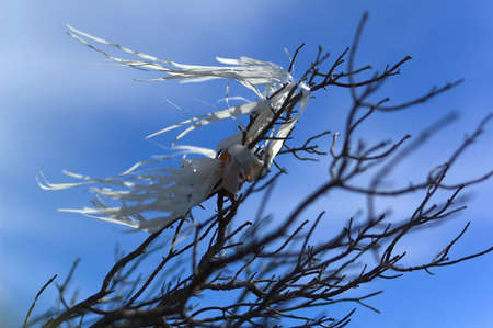 White tiny tube worm in macro scene in marine reef aquarium