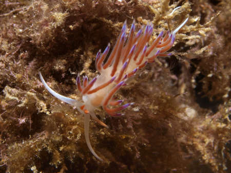 Flabellina affinis, Mediterranean underwater life.