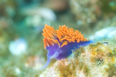 Underwater image of a purple Flabellina Nudibranch