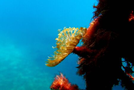 Yellow Mediterranean Horseshoe Tubeworm - (Protula tubularia)