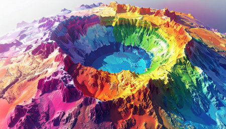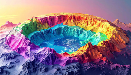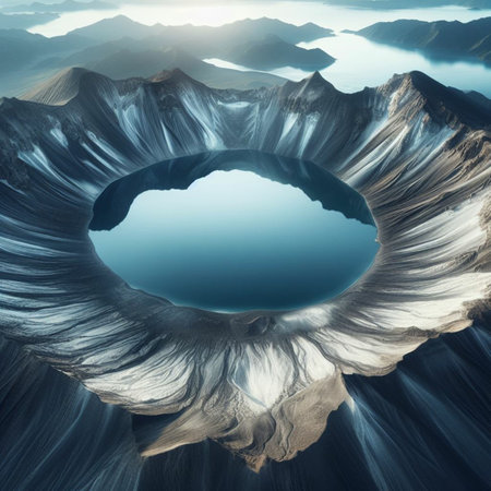 An AI generated illustration of an aerial view of a crater located on a hillside