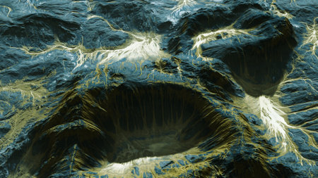 Captivating volcanic landscape featuring deep craters and rugged terrain at dawn