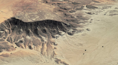 The landscape of the sandy desert in Qatar from a bird's eye view, 2024