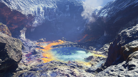 Dramatic volcanic landscape with vibrant colors reveals natures raw power