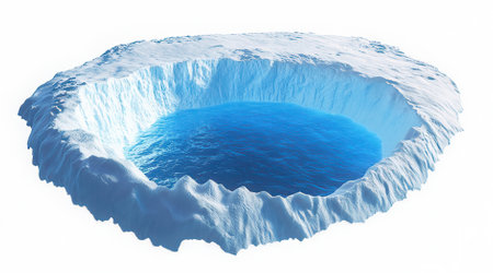 Blue hole in the ice on a white background. 3d rendering