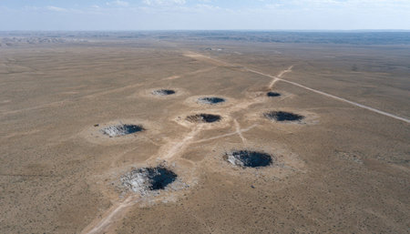 AI Generated. Craters formed by natural gas fires in a desolate landscape during midday