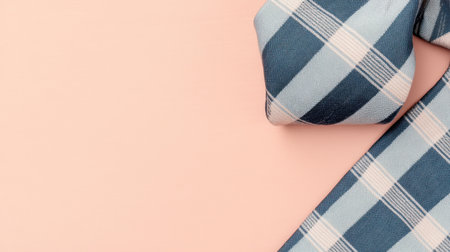 A stylish blue and white checkered tie elegantly positioned on a soft pink background, perfect for showcasing fashion and business attire inspirations.