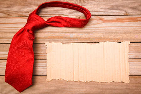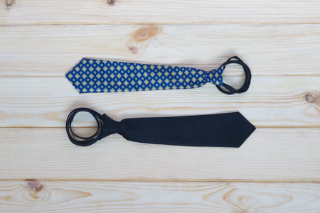 Father's day concept design of necktie on wooden floor background, copy space for text.