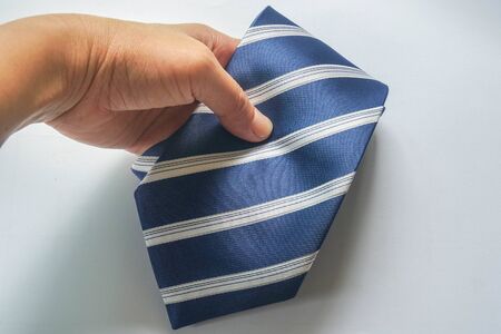 father's day concept. Top view photo of blue striped tie on bicolor blue background with empty space