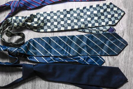 Neckties. Set different neckties. Colored tie for men. Set of stylish men accessories, men's fashion. Collection of coiled neckties in display. Sakura necktie. Bow tie. ... High quality photo