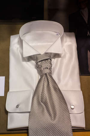 Ties on the shopwindow of a shop in Milan, Italy