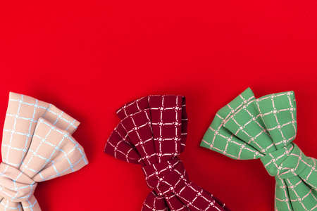 Three bow ties, two black and one red. Team work, career, hipster, wedding concept.