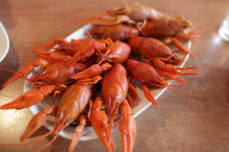 Plate with boiled crawfish