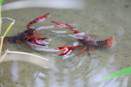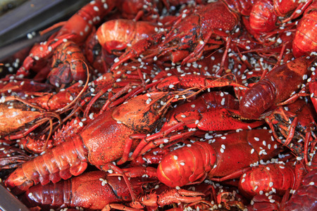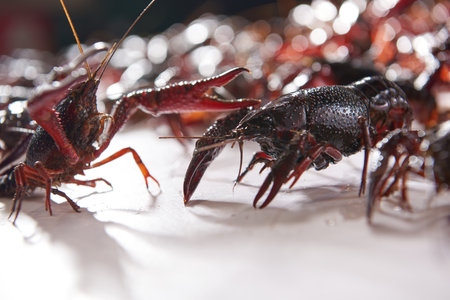 Plenty of fresh crayfish. Raw crayfish are plentiful. crawfish, closeup, river