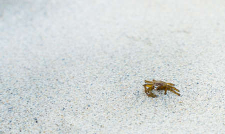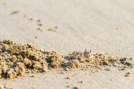 Crab walking on white sand beach walking into the sea, on the beach, at the sea, in the morning , the crab life lives on the sandy beach.