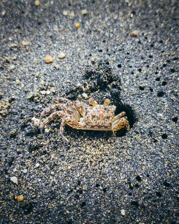 Small crabs crawling on the rocks on the shore. Coral reef wildlife