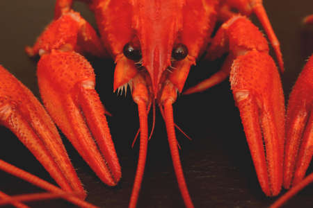 Red crayfish on a black background close-up macro photography