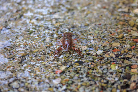 Crayfish on the beach. Selective focus. Shallow depth of field.