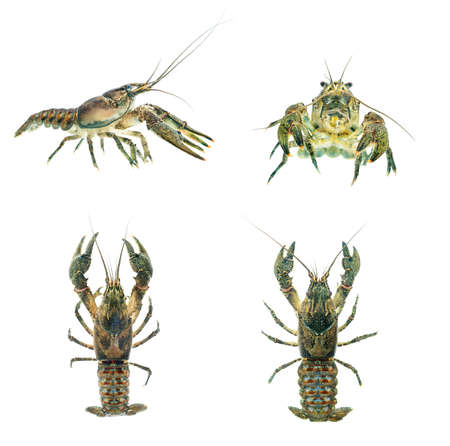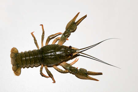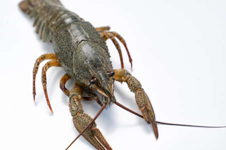 alive crayfish isolated on white background, live crayfish closeup, fresh crayfish. Beer snacks, river crayfish