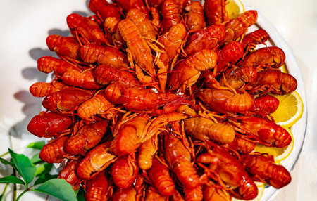 boiled crawfish on the table