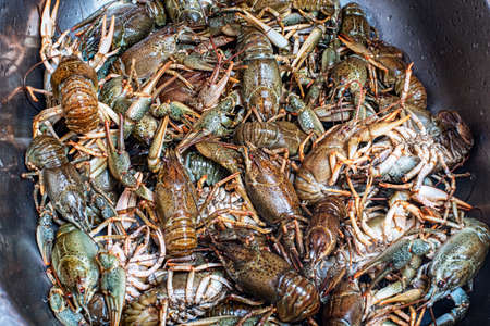 Plenty of fresh crayfish. Raw crayfish are plentiful. crawfish, closeup, river