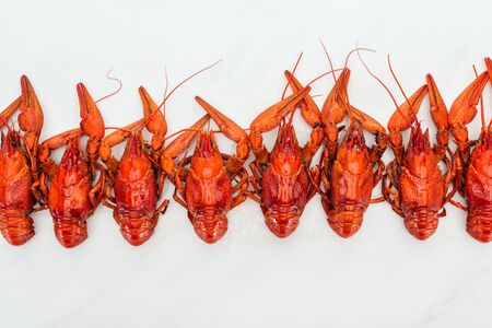 boiled crawfish on the table close-up. horizontal view from above