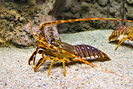 Lobster walking on the sand underwater, close up