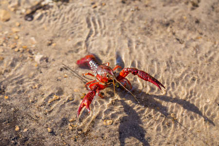 Red mudbug in the freshwater stream of a irrigation ditch