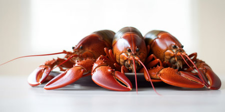 A pile of lobsters sitting on top of a white table. Generative AI image.