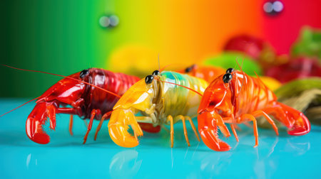 colorful crayfish on the background of the rainbow. macro