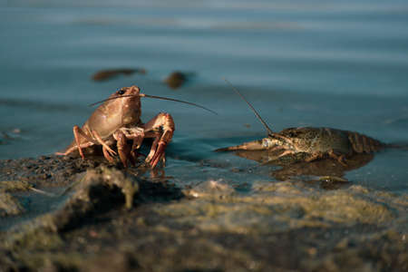 Astacus Astacus, Crayfish, on the shore of a lake. In Portugal
