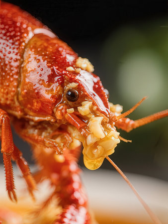 Close-up of red boiled crayfish.