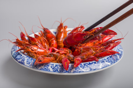Red cooked crayfish on a white background