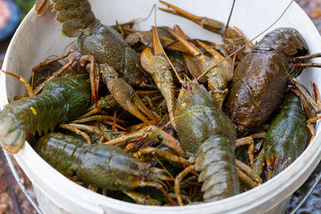 wonderful freshly caught crayfish as a trophy for a successful fishing foods