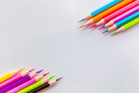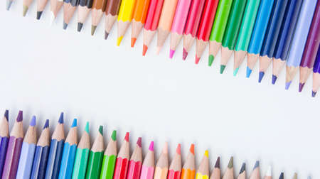 Pattern of Colorful Many colored pencils on a white background and copy space