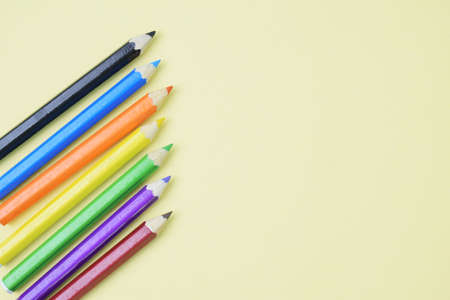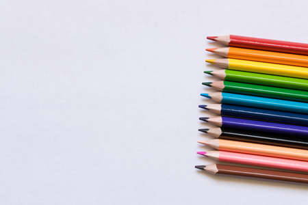 Color pencils set, row wooden color pencils isolated on white background. colored pencils for drawing. copy space.