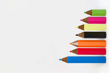 Decorative color pencils on a white background. Handmade colored pencils of different lengths. The concept of education and development