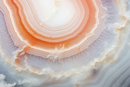 This captivating abstract image showcases the intricate layers of agate in warm tones of orange and white, highlighting the beauty of natural minerals.
